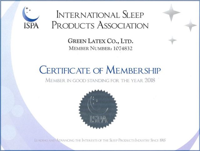 Компания Green Latex является членом Международной Ассоциации Продукции Для Сна (ISPA). Организация базируется в США, и её миссия заключается в продвижении интересов индустрии и своих поставщиков, предоставлении юридической, информационной и образовательной поддержки.